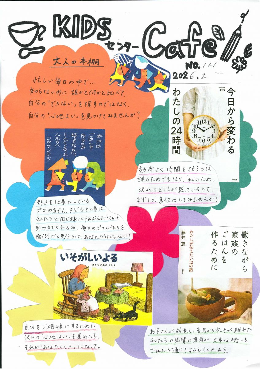 KIDSセンター Cafe 大人の本棚 自分の「心地よい」を見つけてみませんか?PDFはこちら![]()