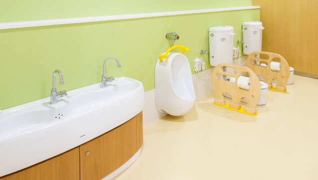 館内には、子ども用のトイレ、大人用トイレ、ユニバーサルトイレがあります。遊びの広場に隣接するトイレには、おむつ替え台、シャワースペースもあります。