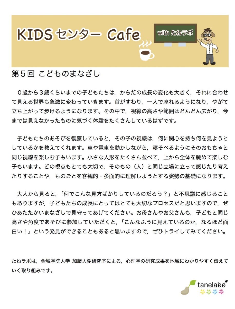 多元心理学科加藤研究室との連携企画として、KIDSセンターCafeの中で子育てトピックをお届けしています。第5回のテーマは、「こどものまなざし」です。