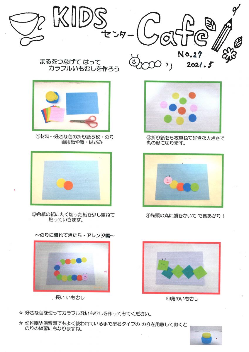 まるをつなげて、貼ってカラフルないもむしをつくろう!